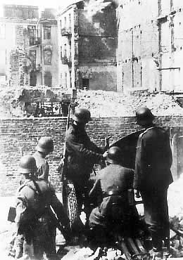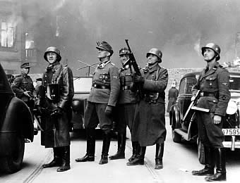 Stroop (terzo da sinistra) ammira la sua opera, la distruzione del Ghetto di Varsavia -foto d'epoca-