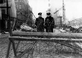 Pattuglia di polizia ebraica ad uno degli ingressi del Ghetto.