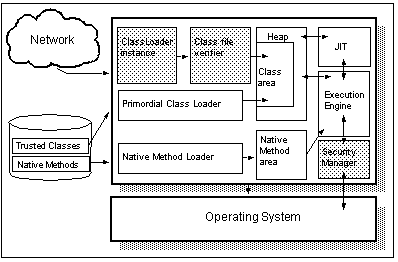 See Components of the JVM shows a simplified representation of the JVM. Those components which are highlighted are generally only found in Web browsers rather than in the stand-alone implementations required to execute Java applications.