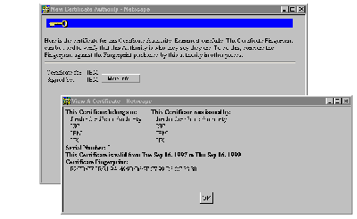 Netscape has developed mechanisms to solve both of these problems. They are based on messages with special MIME types that trigger key management functions in the browser. The MIME types are: