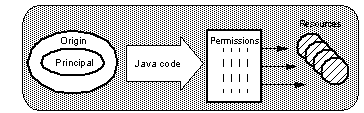 The way the permissions are applied will mirror the current SecurityManager function. That is, every attempt to access a protected resource will be routed to the access control function, which will examine the permissions of its protection domain and either return quietly or throw an exception (in fact it will have to trace back the execution thread to check all of the protection domains, so that unauthorized code cannot beat the system by calling an authorized function).