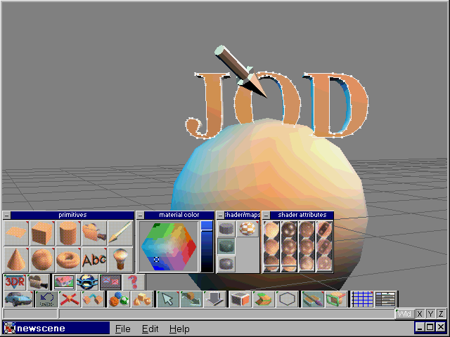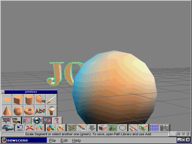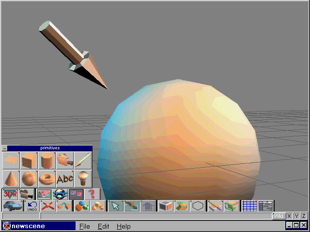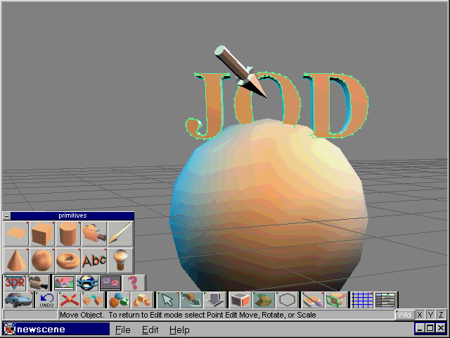 First, you create a sphere to be your "world." The 3-D arrow points to the current object.