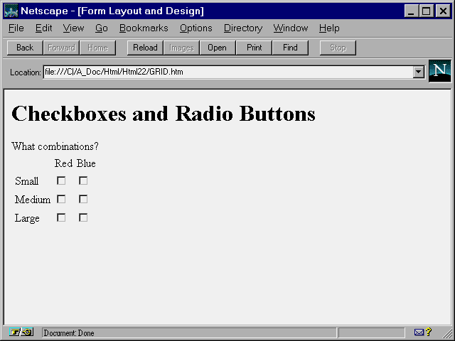 <TR><TD>Medium</TD><TD><INPUT NAME="mr" TYPE="checkbox"></TD>