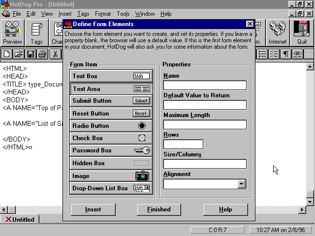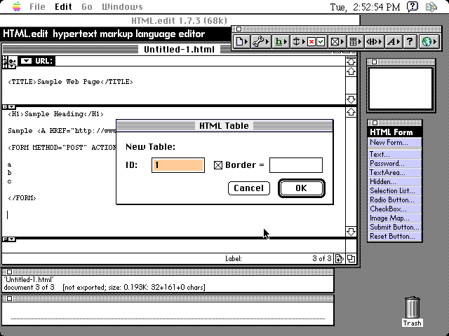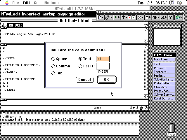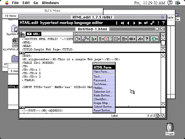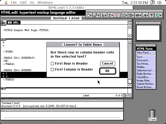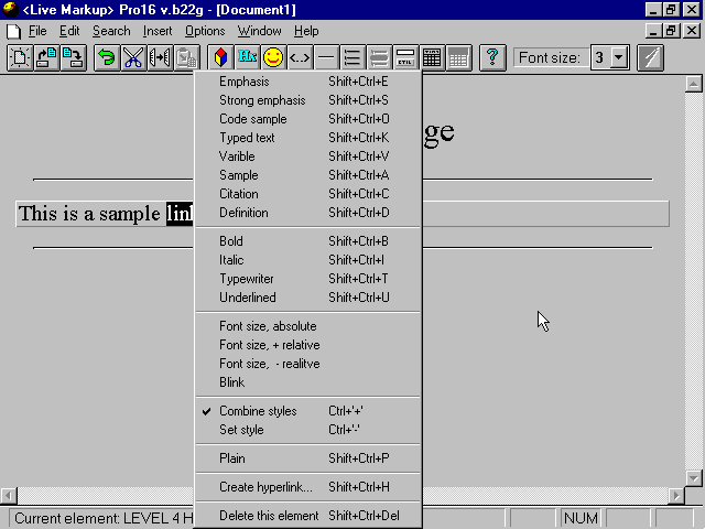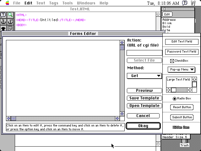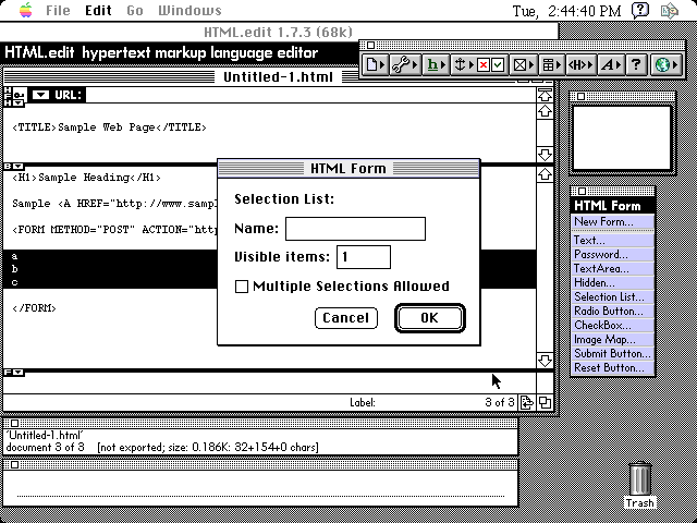 are visible. In either HTML 2 or HTML 3 mode, only tags that are defined