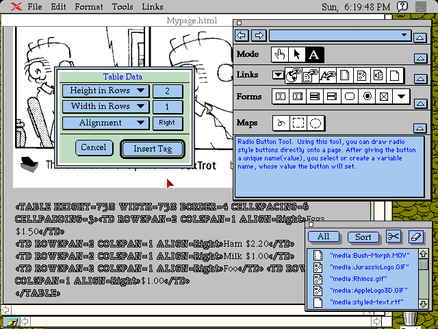 Edit Tag button. A dialog box pops up, depending on which HTML