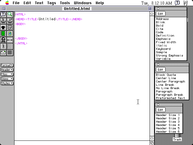 editors. For one thing, tags-only HTML editors are usually the first programs