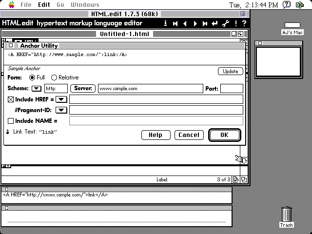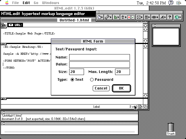General Look and FeelEntering text with asWedit is a simple matter of putting your cursor somewhere, and typing. It also helps that asWedit follows the typical cursor movement conventions of many other programs. Consequently, if you've used almost any other word processor, or HTML editor, you'll have no problems with asWedit. It also comes with a full help file system, including context sensitive help. If you're not sure what a particular field for a dialog box, simply hit F1.