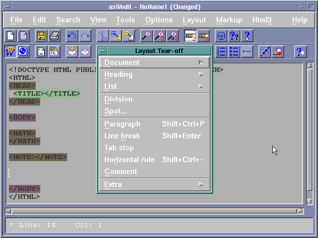 Although it has the look and feel of a Windows program, asWedit is an X Windows/Motif HTML editor.