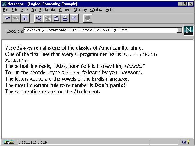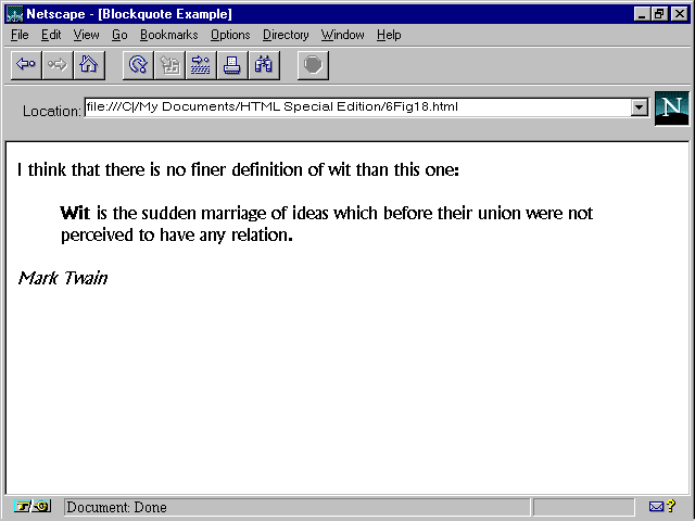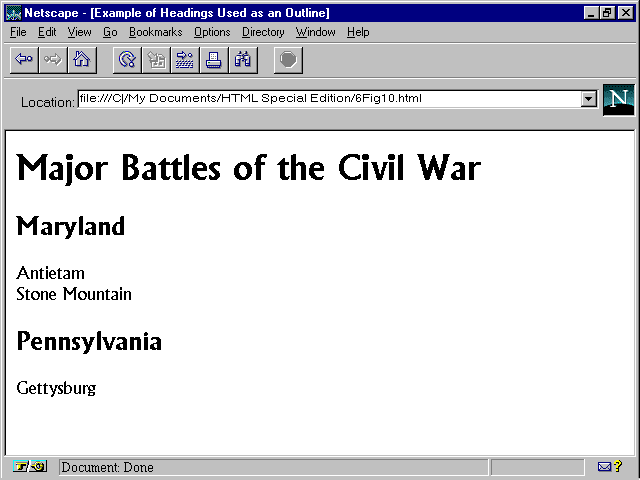 When you look at the document in figure 6.5, you can see that the browser separated the paragraphs correctly by adding a double-spaced line between them.